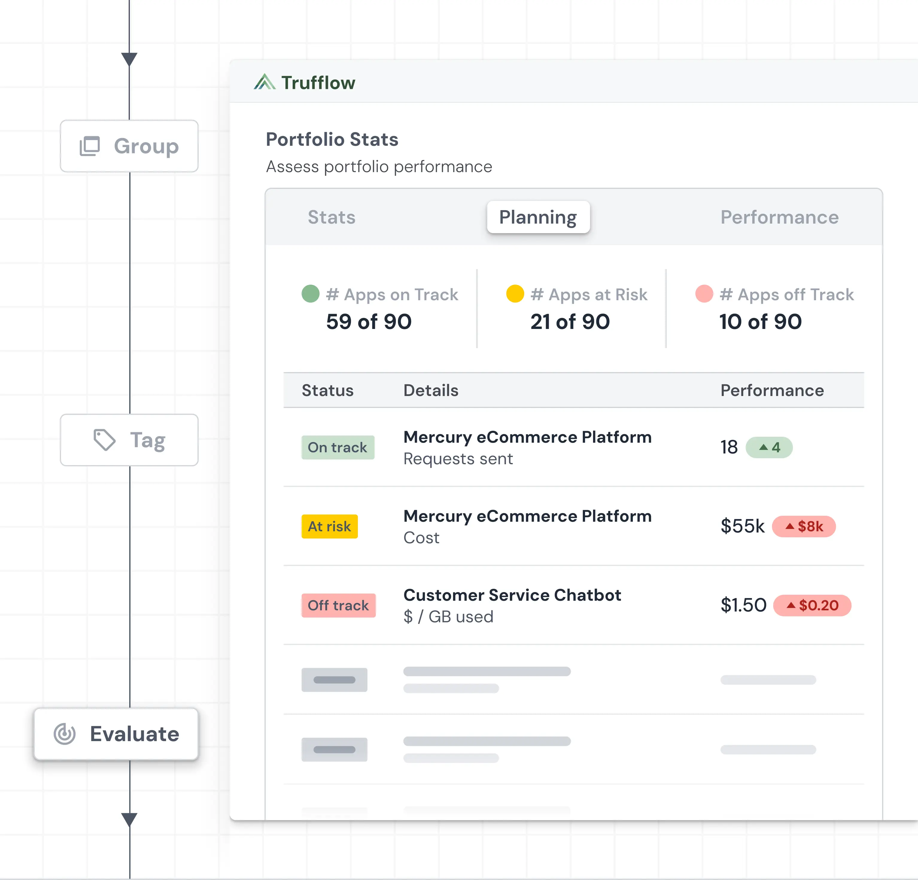 Trufflow’s planning support provides continuous monitoring of what that matters to your organization, across more than two dozen metrics in areas like usage, consumption, reliability, and centrality.
